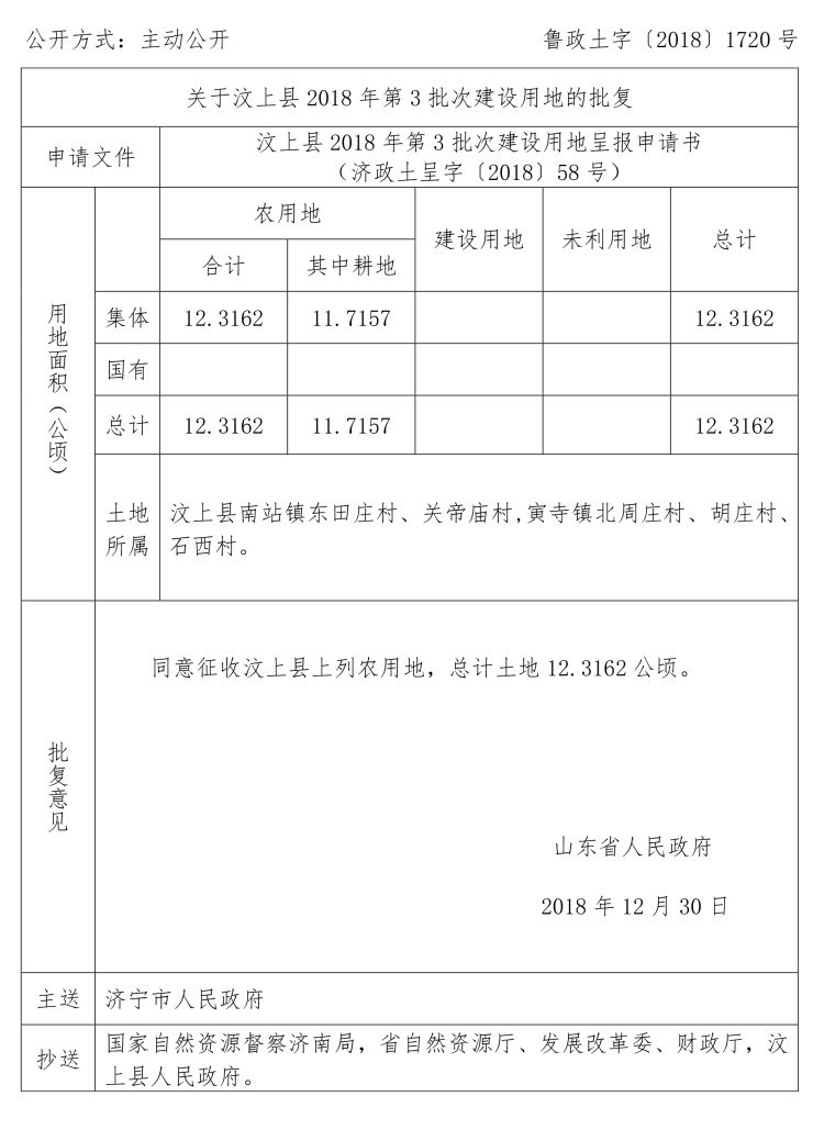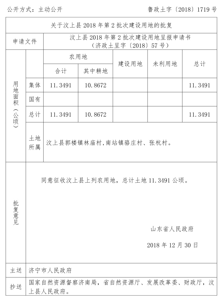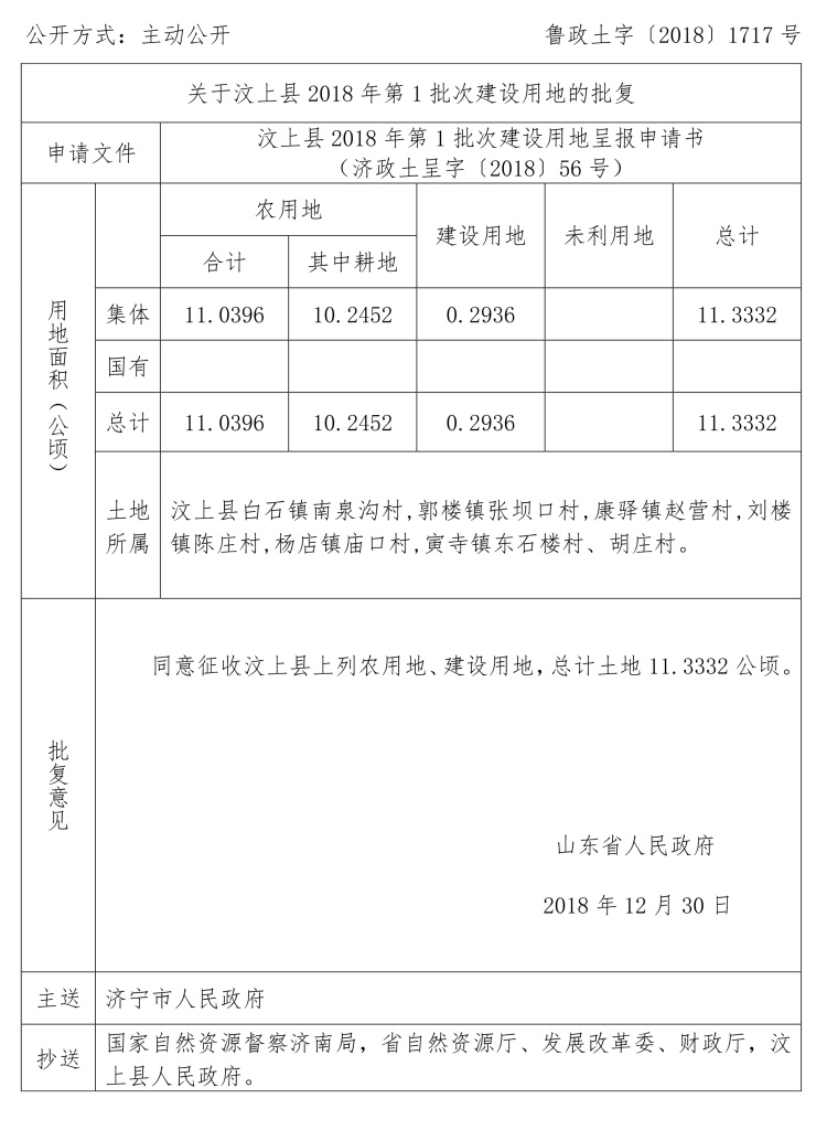 涉及汶上县建设用地审批公告: