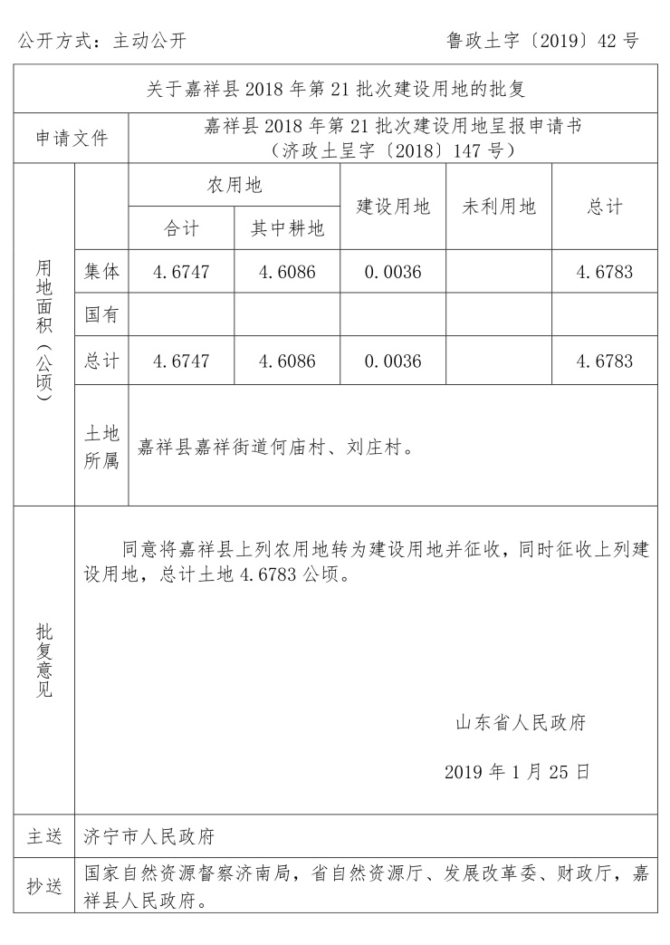 涉及嘉祥县建设用地审批公告: