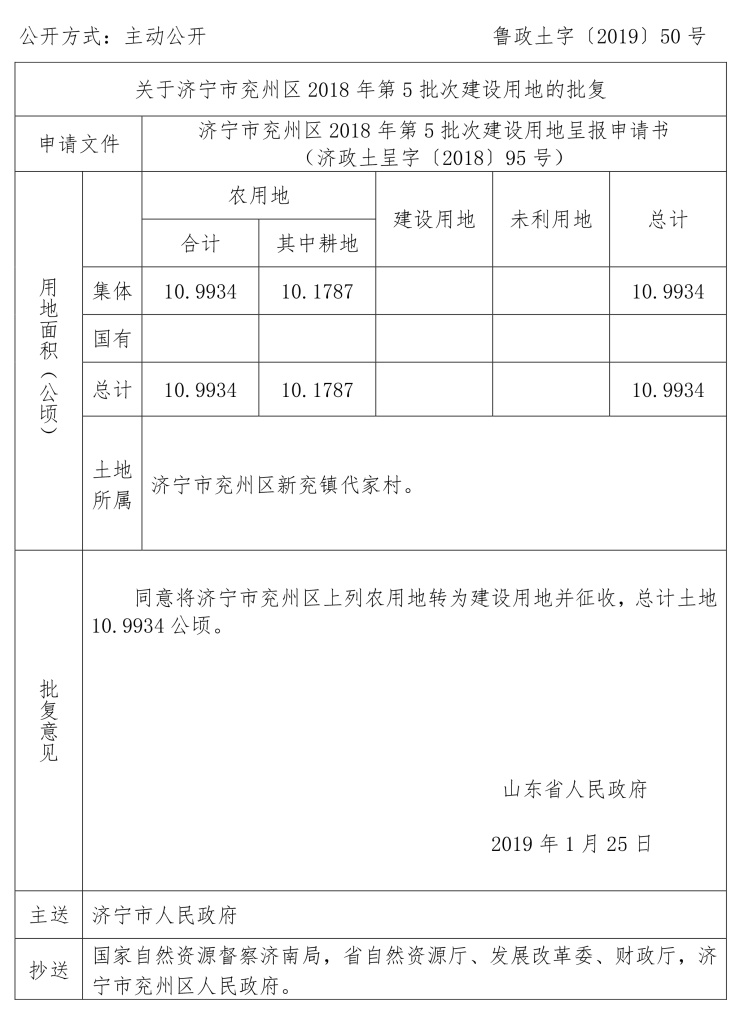 涉及兖州区建设用地审批公告: