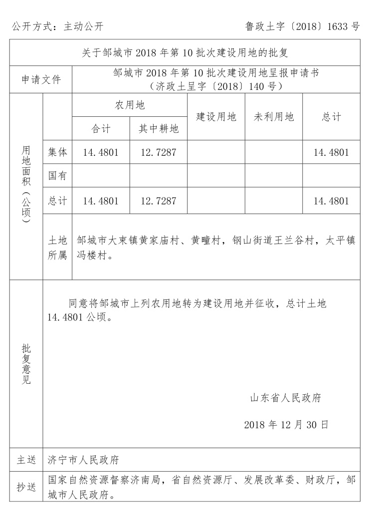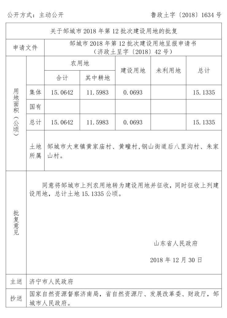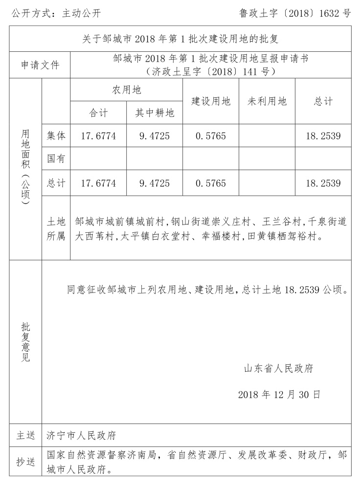 涉及邹城市建设用地审批公告: