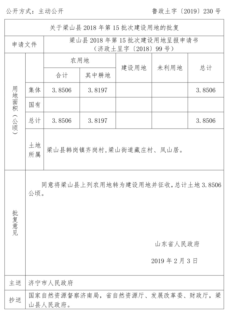 涉及梁山县建设用地审批公告: