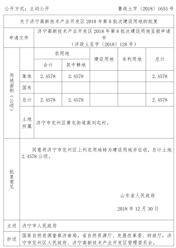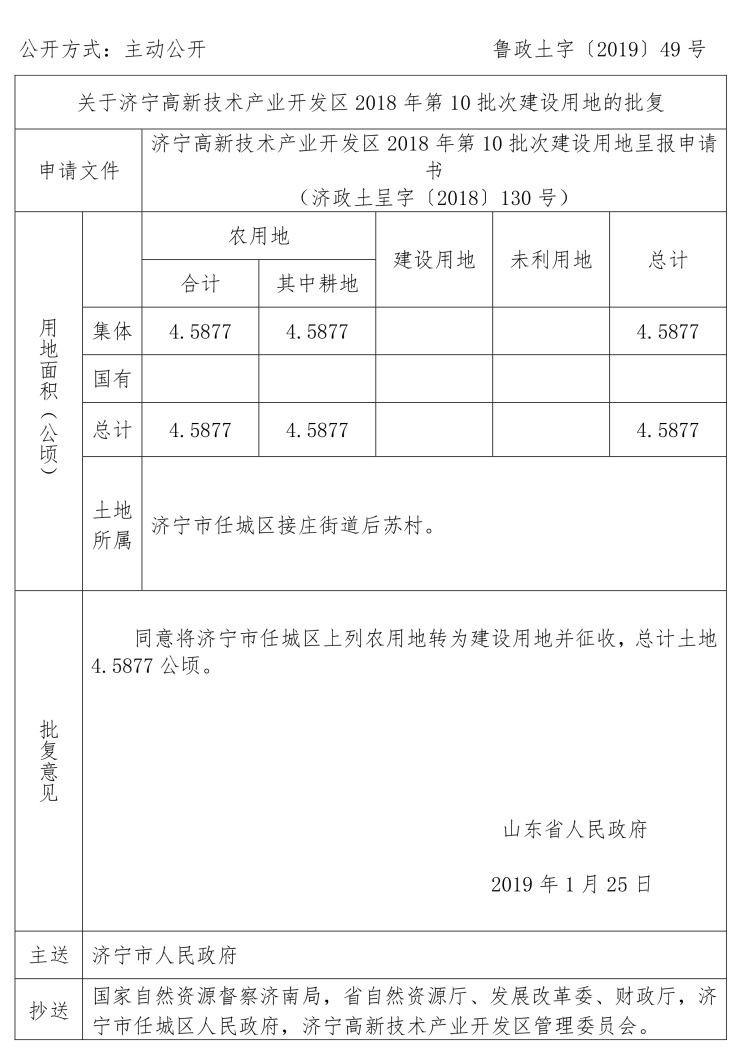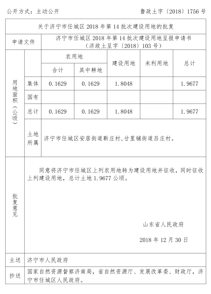 涉及任城区建设用地审批公告: