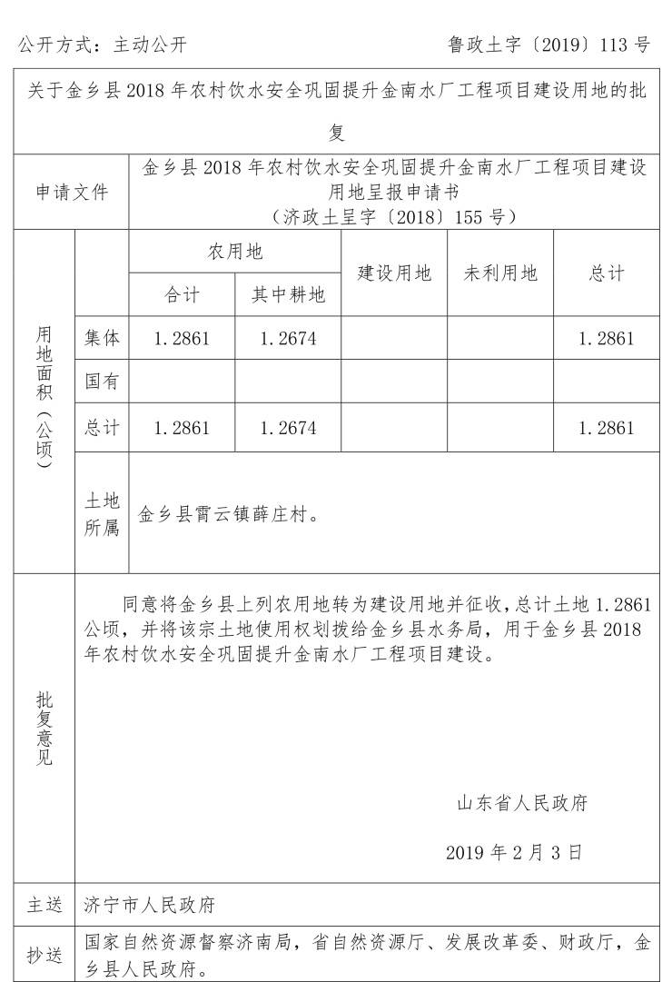 涉及金乡县建设用地审批公告: