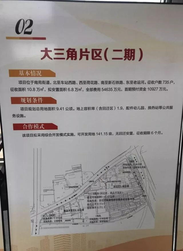 该片区将征收1611户,征收面积38.25万㎡,拟安置面积34.8万㎡,全部费用149647万元,首期预付资金29929万元。该项目拟采用综合开发模式实施,回迁安置用地258.92亩,可开发用地215.53亩,征收期限8个月,回迁区建设期限30个月。