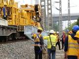 4月22日,在山东省济宁市梁山站施工现场,中铁十局作业人员正在进行接触网支柱组立作业施工,标志着雄商高铁梁郓段接触网改造施工正式拉开序幕,至此,“四电”改造施工已全面展开。