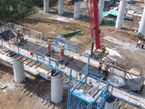 济曲快速路项目继续推进,上跨京沪铁路立交桥工程2×80米T构连续梁0#块顺利浇筑,共计浇筑混凝土1419立方米,标志着全线按下“快进键”。刘毅腾表示,要加快进度,争取早日完工。