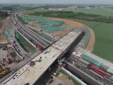 时庄互通立交是G327改建工程东段重要控制节点工程,位于曲阜刘家村南,跨越G104,采用单喇叭型式,桥梁跨径组合为4×25+4×25米,全宽20米,上部结构采用现浇预应力混凝土等截面连续箱梁,下部结构采用柱式墩、肋板台、钻孔灌注桩基础。施工单位进场以来,精心编制施工方案和交通组织方案,在保障G104