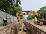 5月10日,记者探访了古槐路交通疏解项目,南起太白楼路北至金宇路的古槐路主路部分进行封闭施工,目前该项目正在进行雨污水管道沟槽开挖、管道安装、沟槽回填等工作,完成雨污水沟槽土方挖、运3万余方、管道安装3600米、回填1.5万余方,预计6月底完成管道施工。