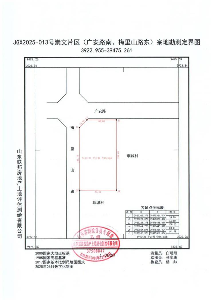 地块一:济宁高新区JGX2025-013号崇文片区(广安路南、梅里山路东)宗地【梵晨博生(山东)医药集团有限公司竞得】