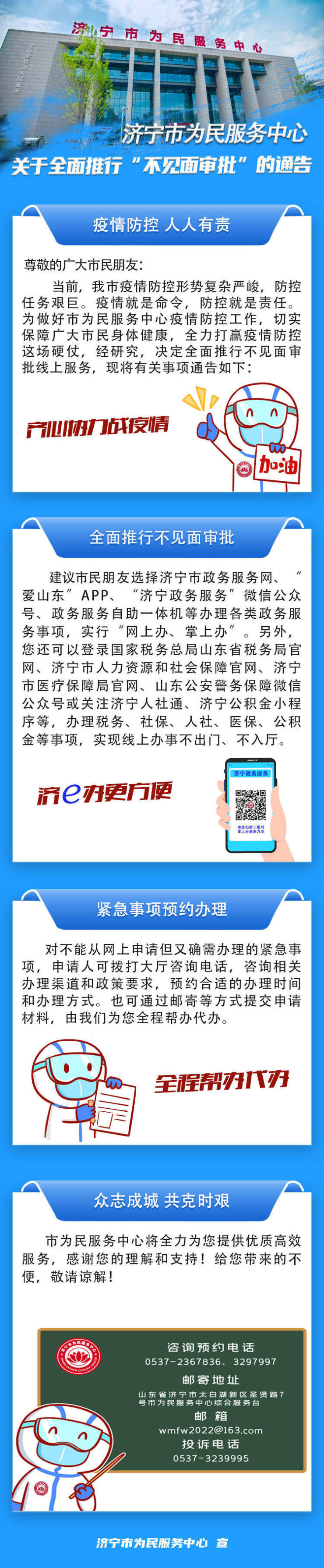 济宁市为民服务中心关于全面推行“不见面审批”的通告