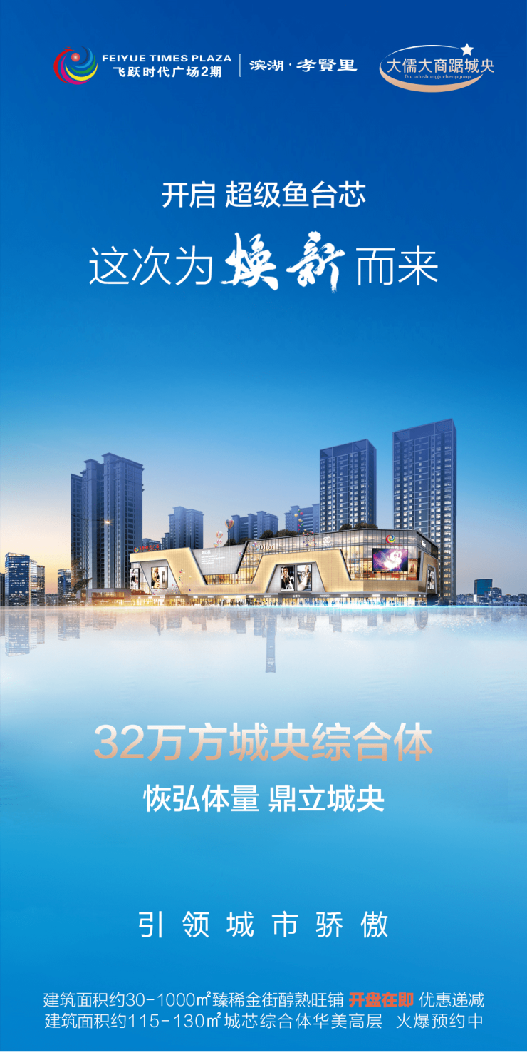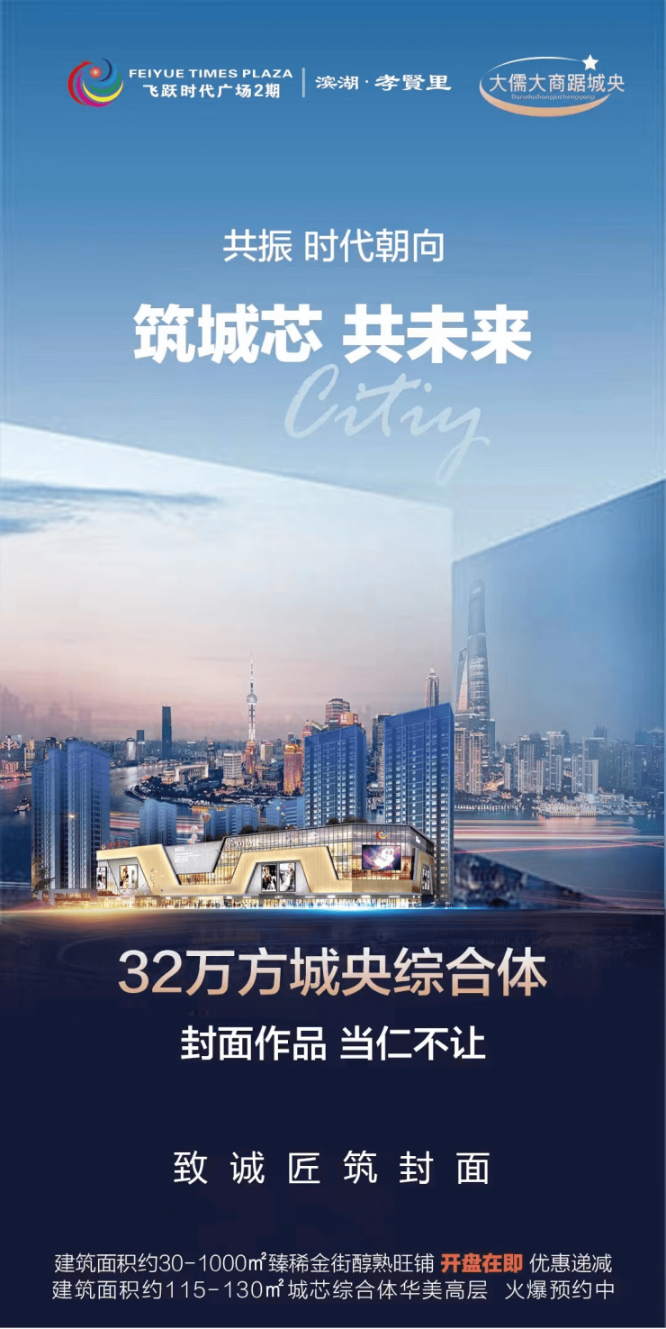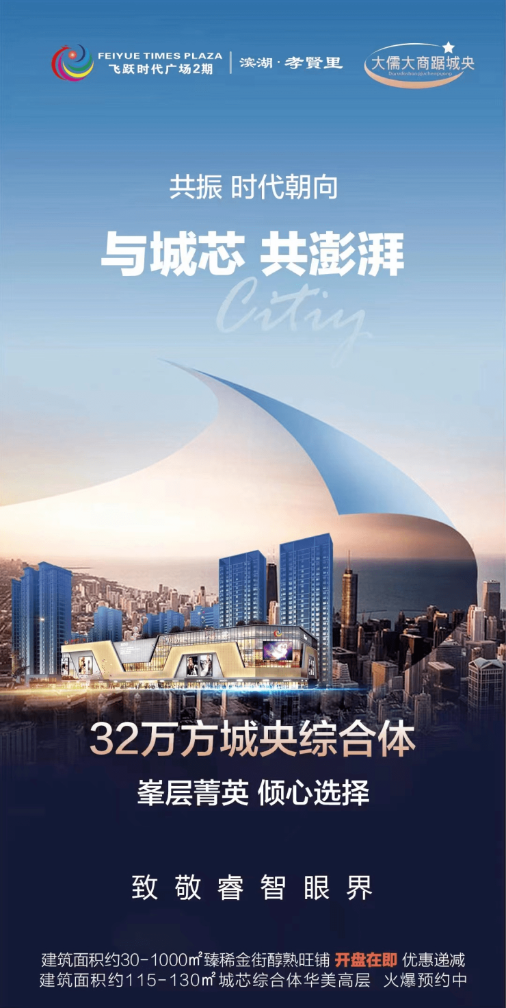 飞跃时代广场2期-滨湖·孝贤里作为飞跃地产迄今为止的先进作品,首开综合体住宅先河,以32万方恢弘体量,焕新城市天际线与人居新高度。
