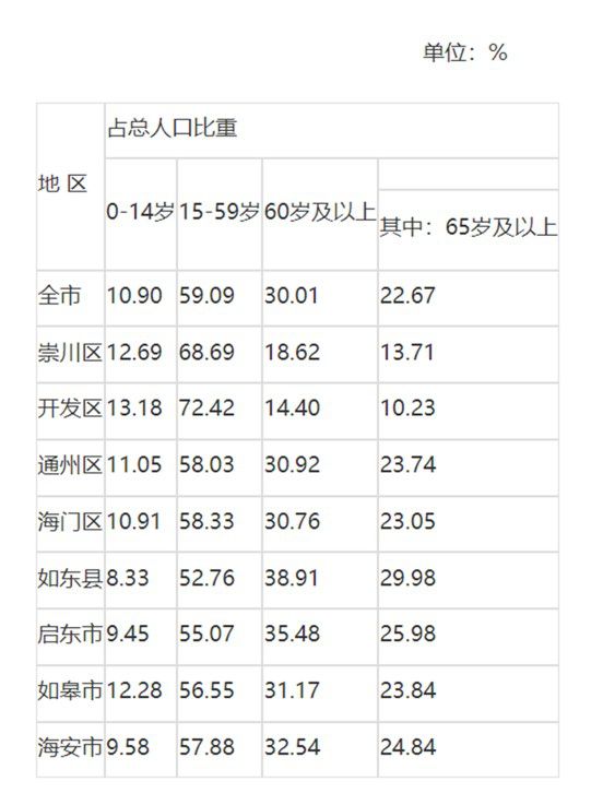 其中,位居排名前列的南通这一比例达到了22.67%,成为我国老龄化程度最深的城市。