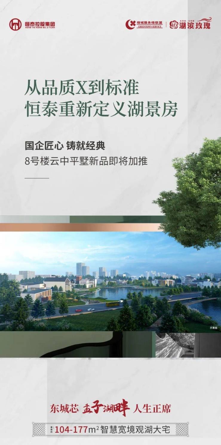 从品质X到标准,恒泰湖滨玫瑰重新定义湖景房。国企匠心,铸就经典,8号楼云中平墅新品即将加推。东城芯,孟子湖畔,人生正席。湖滨玫瑰建面约104-177㎡智慧宽境观湖大宅。