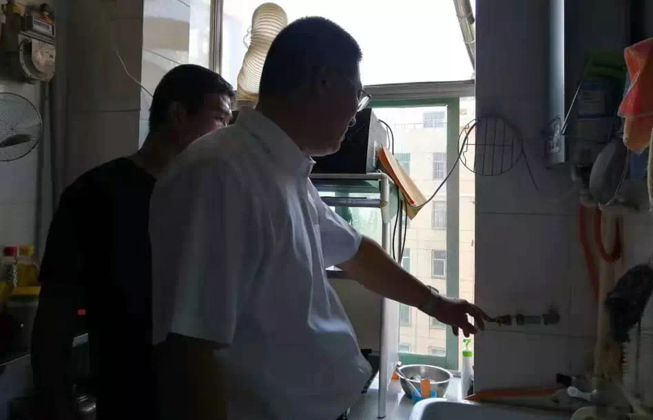●8月15日上午,市住建局党组成员张鹏同志,带领燃气热力科、市燃热办、任城区住建局,越河街道、华润燃气公司有关同志,针对反映问题,入户走访了解情况,现场研究制定解决方案。初步方案为:由北侧矮立管(气源点)接出燃气管道向上架空至楼顶,上翻后穿过楼顶面,再下翻至二单元中户的南侧位置,再由下向上安装至每户阳台灶具位置。8月15日下午,济宁华润燃气有限公司设计人员与社区工作人员进行对接,并入户测量。