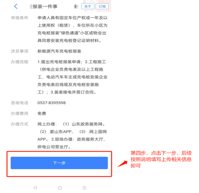 申报方式如下:1、打开“爱山东”APP,登录高新区站点。2、搜索框中搜索“新能源汽车充电桩报装一件事”。3、点击“新能源汽车充电桩报装一件事”。4、点击“下一步”,按照流程填写上传所需资料即可完成充电桩报装申请。