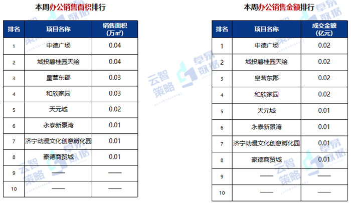 第2周中德广场项目以销售面积0.04万㎡,销售金额0.02亿元,位居办公成交面积,金额双排行榜排名前列。
