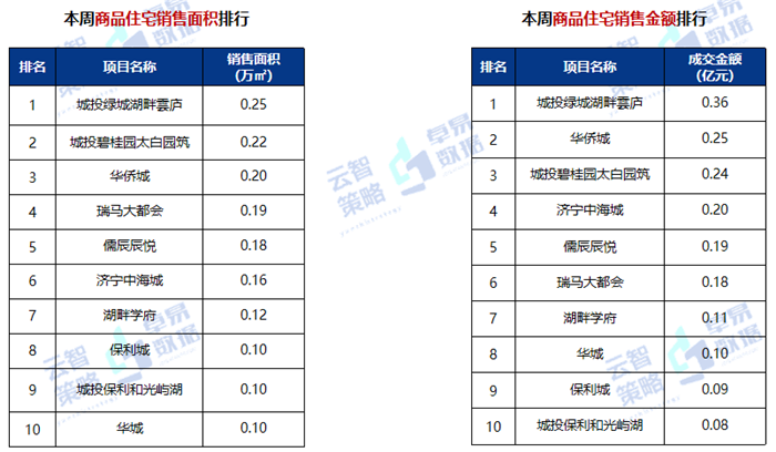 第2周城投绿城湖畔雲庐项目以销售面积0.25万㎡,销售金额0.36亿元,位居住宅销售面积,金额双排行榜排名前列。