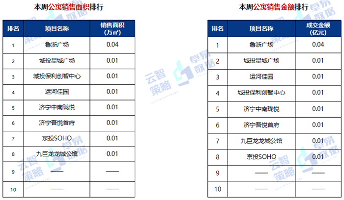 第2周鲁浙广场项目以销售面积0.04万㎡,销售金额0.04亿元,位居公寓双排行榜排名前列。