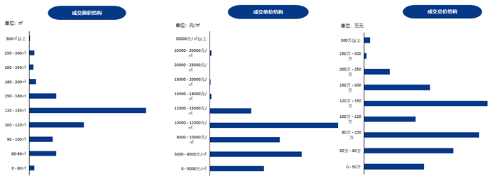 据云智策略&卓易数据监测显示,第2周全市商品住宅成交主力面积段120-150㎡;主力成交单价段10000-12000元/㎡;主力总价段120-150万。