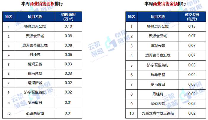 第2周鲁商运河公馆项目以销售面积0.10万㎡,销售金额0.15亿元,位居商业双排行榜排名前列。