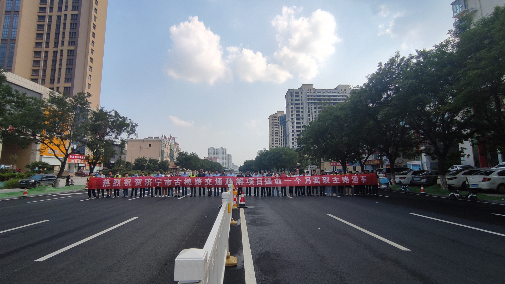 8月15日下午,济宁主城区古槐路交通疏解项目主路通车仪式举行,比预定工期提前一个月实现主路通车。