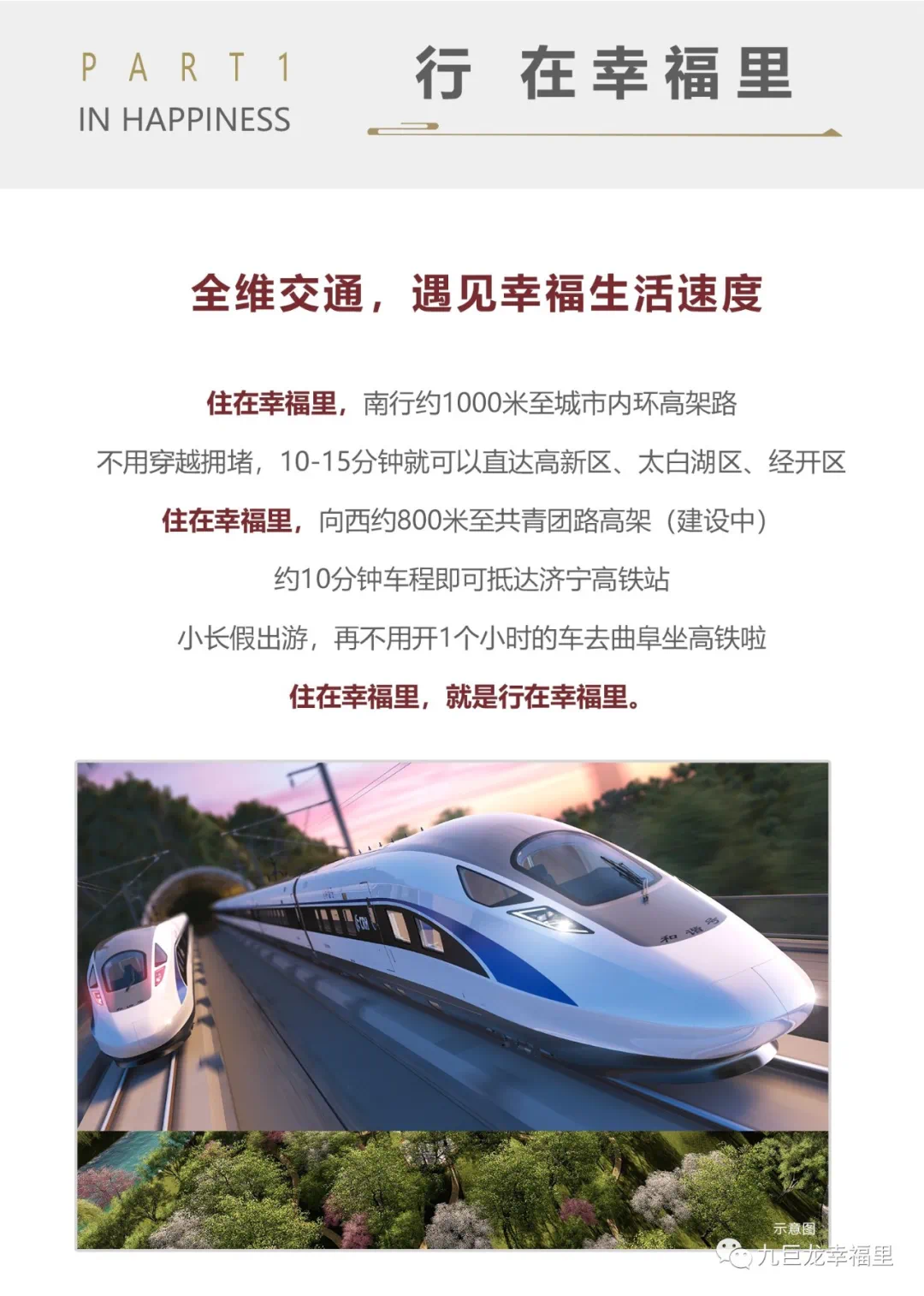 住在九巨龙幸福里,沿建设路向南约2.8公里直走就是任城万达广场、住在九巨龙幸福里,约2.3公里内到佳世客、贵和、九龙家电、金宇家居。住在九巨龙幸福里,尽享成熟城市商圈、任意选择各大商场。住在九巨龙幸福里,就是逛在幸福里。