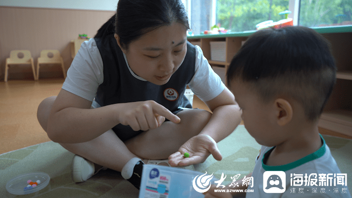 “这是什么颜色的小球?是不是绿色……”8月17日,在济宁市托育综合服务中心,托小班的小朋友们在老师的带领下正饶有兴趣地和五颜六色的小球“做”着游戏。