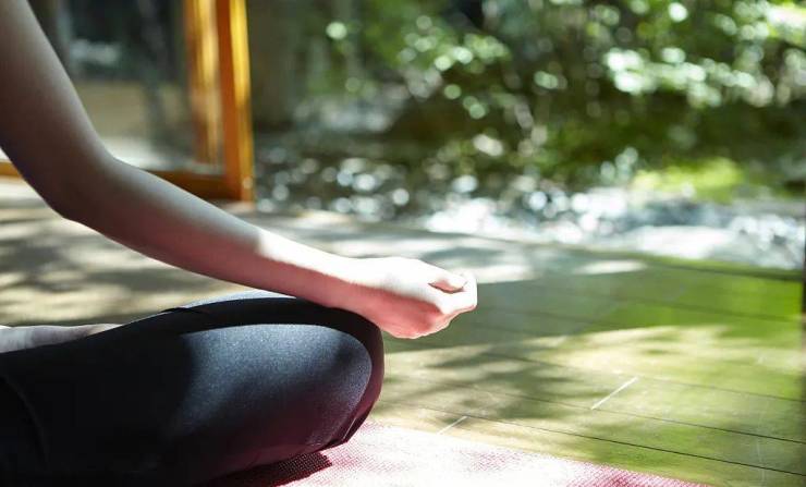 在露台上铺一张瑜伽垫,做有氧运动