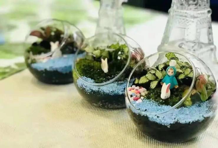 一个玻璃瓶、一些小摆件,加上苔藓