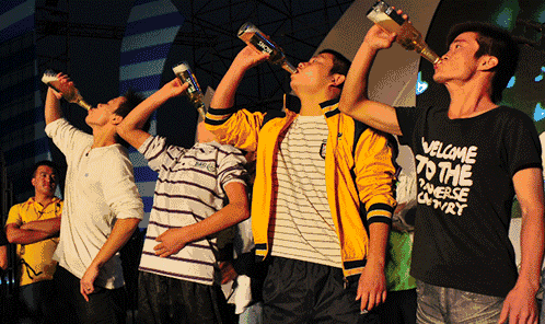 以主持人的提示开始吹瓶,用时最短的为优胜者