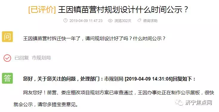 网友提问:王因镇苗营村拆迁快一年了,请问规划设计好了吗?什么时间公示?