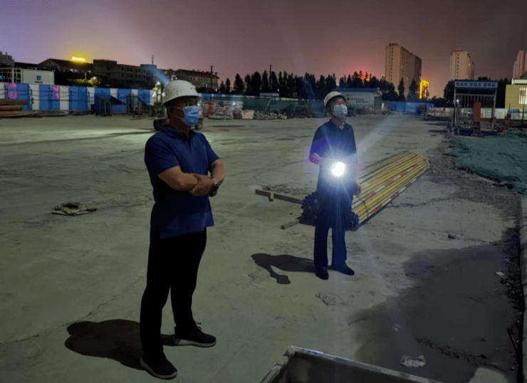 5月29日晚,市住建局二级调研员张鹏带领检查组针对扬尘治理问题对高新区建筑工地进行夜查。