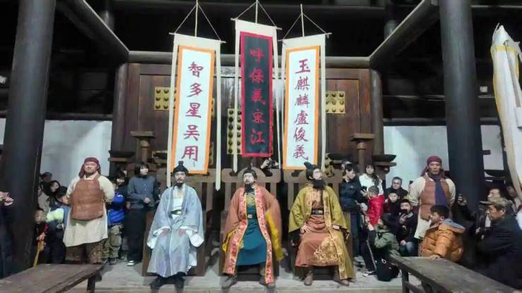 “水浒江湖年”活动精彩纷呈,《智取生辰纲》《野猪林》等经典实景大剧轮番上演,百余名水浒 NPC 沉浸式互动、宋代传统游戏实景再现,搭配开封万岁山 “每日一星” 特色演出,深度还原水浒忠义文化与民俗风情。