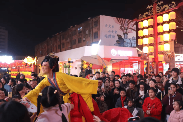 “峄山亮灯・照我前程”新春祈福庙会启幕,杂技、魔术、快板等民俗表演精彩不断,NPC 舞蹈秀、趣味互动游戏接连上线,游客在灯火阑珊中体验登山祈福传统年俗。