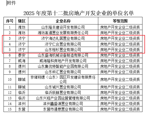 济宁3家!2025年度第十二批房地产开发企业资质名单发布