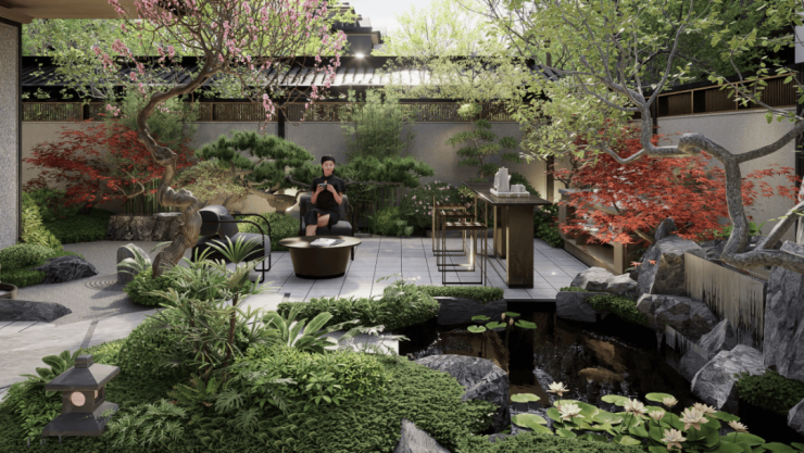 基于居者内心对院落的情愫,能源蓝城·春风仁里合院产品打造南院、北院、侧院(部分合院产品)三院落。在院落的围合中,感受四季变幻的景致,实现与自然的无界链接。
