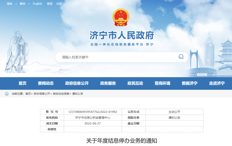 别跑空!济宁住房公积金发布关于年度结息停办业务的通知