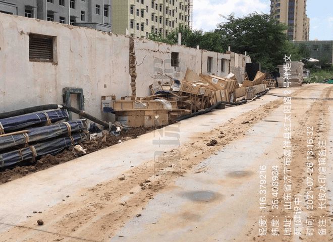 存在问题:1、垃圾未及时清理;2、地面浮土、积土严重;3、材料堆放场地未硬化;4、围挡污损严重。