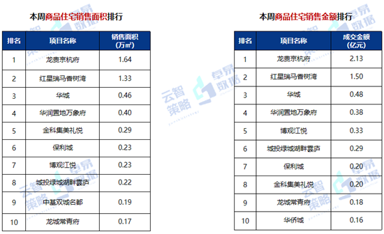 本周龙贵京杭府项目以销售面积1.64万㎡,销售金额2.13亿元,位居双排行榜排名前列。