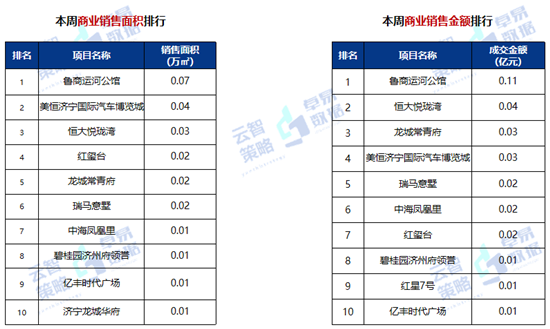 本周鲁商运河公馆项目以销售面积0.07万㎡,销售金额0.11亿元,位居双排行榜排名前列。