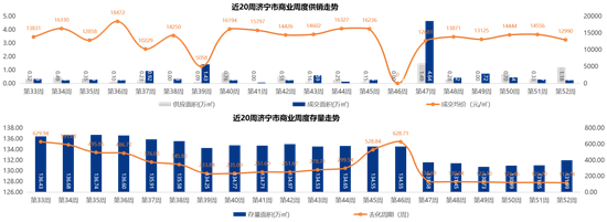 据云智策略&卓易数据监测显示,第52周全市商业供应1.18万㎡,成交0.24万㎡,存量131.99万㎡。