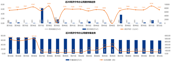 据云智策略&卓易数据监测显示,第52周全市办公供应0万㎡,成交0.20万㎡,均价7227元/㎡,存量58.98万㎡。
