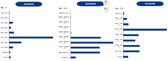 据云智策略&卓易数据监测显示,第52周全市商品住宅成交主力面积段120-150㎡;主力成交单价段10000-12000元/㎡;主力总价段120-150万。