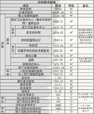 项目规划建设用地面积22920㎡(约34亩);总建筑面积:40047.48㎡;其中,地上总建筑面积:28246.34㎡,包含医疗卫生服务中心(兼老年养护院)9549.37㎡,养老院6932.04㎡,商业公寓7486.59㎡,连廊807.59㎡,体育活动中心3470.75㎡;地下总建筑面积11801.14㎡。计容面积28246.34㎡,容积率1.23;建筑密度33.01%;绿地率31.86%;建筑类型包括医疗卫生服务中心、养老院、商业公寓、体育活动中心、公服配套设施等;规划机动车停车位230个(地上31个,地下199个),非机动车停车位1442个(均位于地上)。