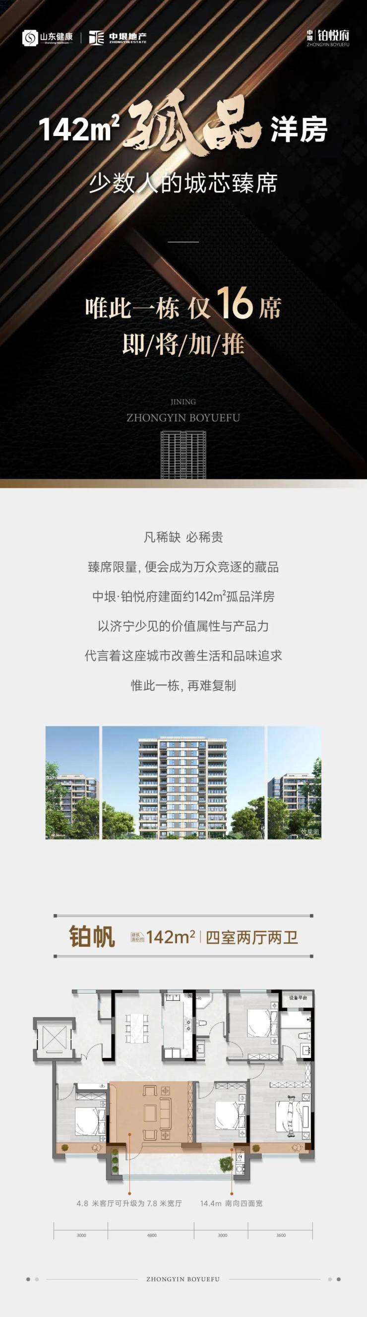 凡稀缺,必稀贵。臻席限量,便会成为万众竞逐的藏品。中垠·铂悦府建面约142㎡孤品洋房,以济宁少见的价值属性与产品力,代言着这座城市改善生活和品味追求。惟此一栋,再难复制。