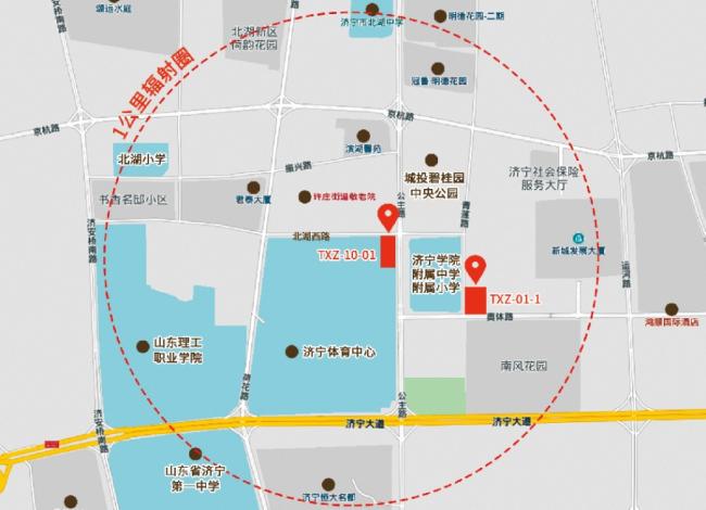 人气是商业地块投资最宝贵的资源。以地块为中心,一公里范围内可辐射济宁市体育中心、济宁市城市展示馆、新城发展大厦、济宁社保服务大厅等公共市政服务单位,南风花园、滨湖馨苑、城投碧桂园等众多大型社区,再加上规划中的吾悦文旅项目等新项目的落地,更将带来大量人气。