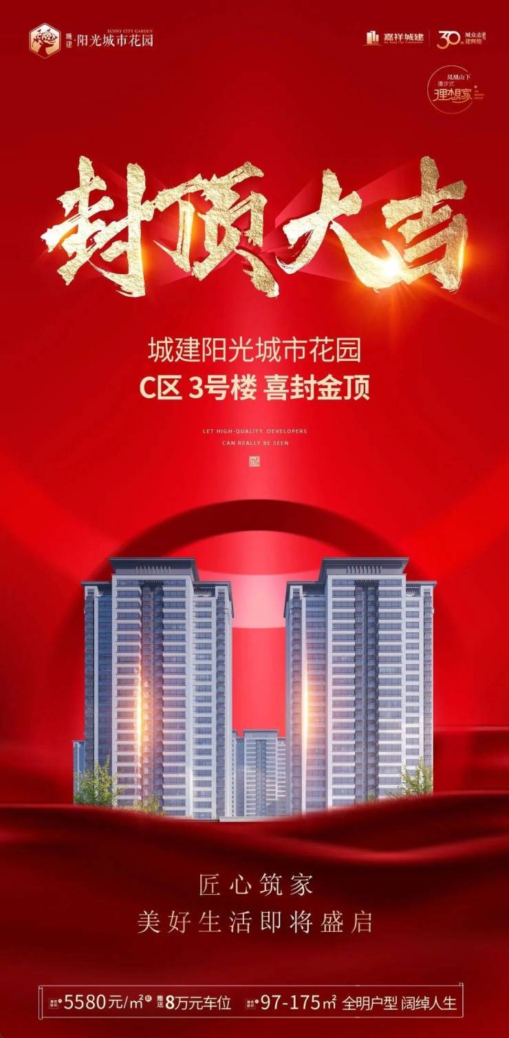 阳光城市花园C区3#楼,喜封金顶。匠心筑家,美好生活即将盛启。建面约5580元/㎡,赠送8万元车位。