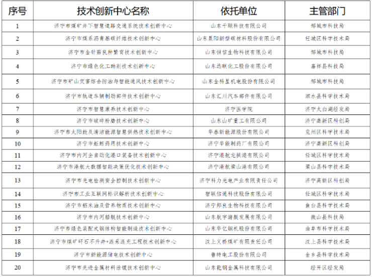 20家!2022年度拟批复建设济宁市技术创新中心名单出炉