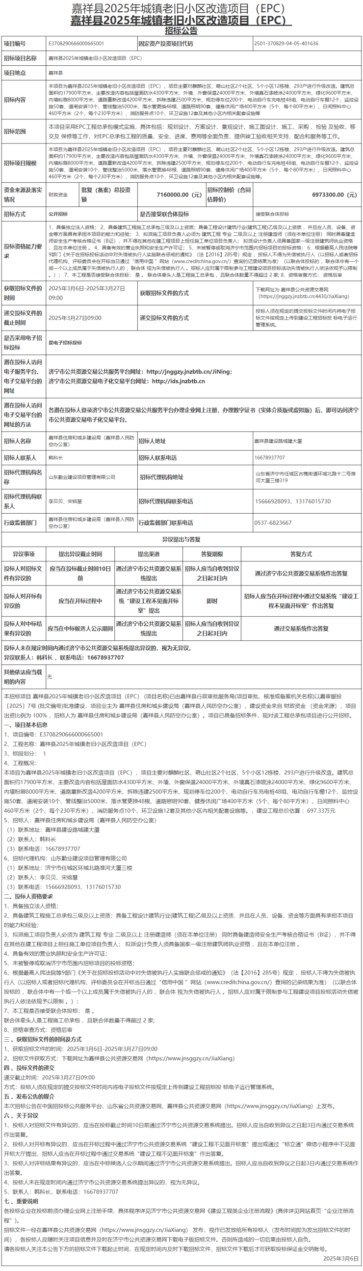 2、工程名称:嘉祥县2025年城镇老旧小区改造项目(EPC)