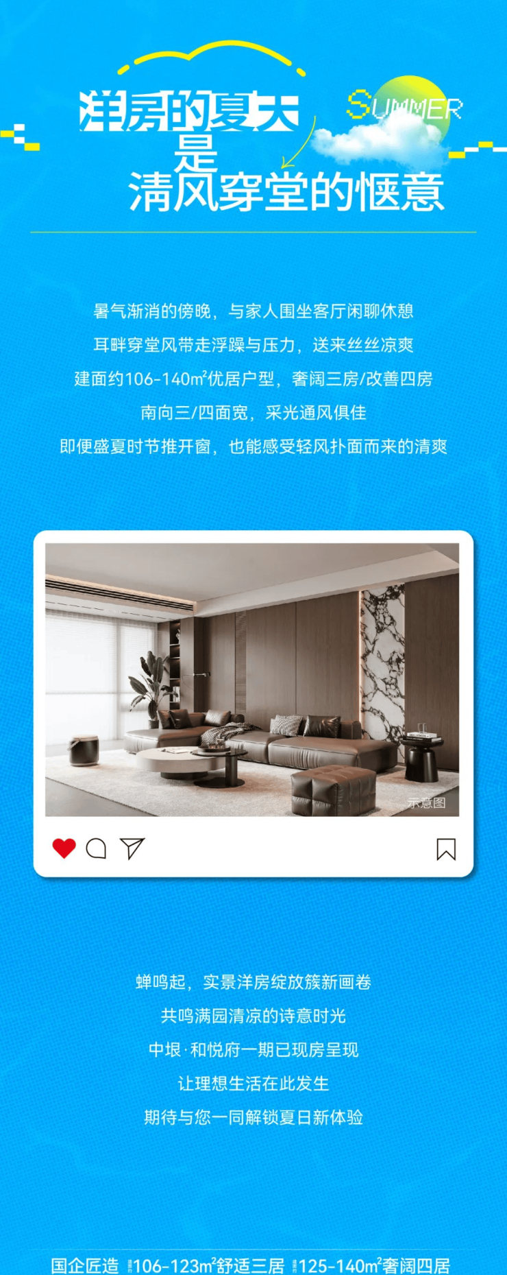 暑气渐消的傍晚,与家人围坐客厅闲聊休憩。耳畔穿堂风带走浮躁与压力,送来丝丝凉爽。中垠·和悦府建面约106-140㎡优居户型,奢阔三房/改善四房,南向三/四面宽,采光通风俱佳。即便盛夏时节推开窗,也能感受轻风扑面而来的清爽。